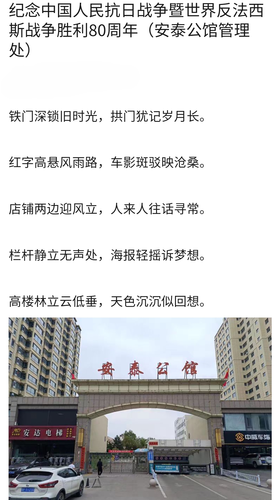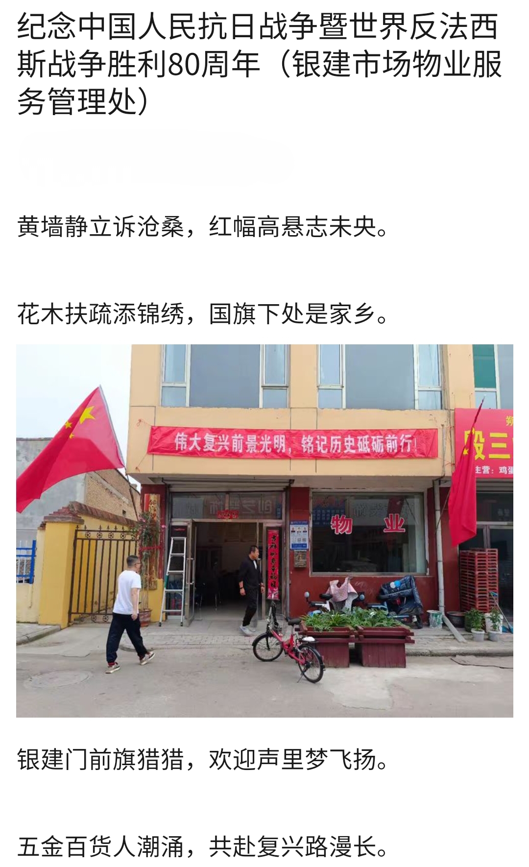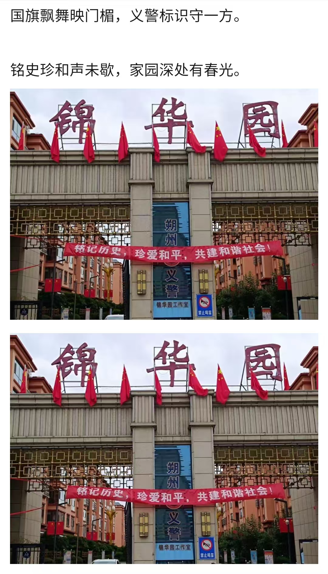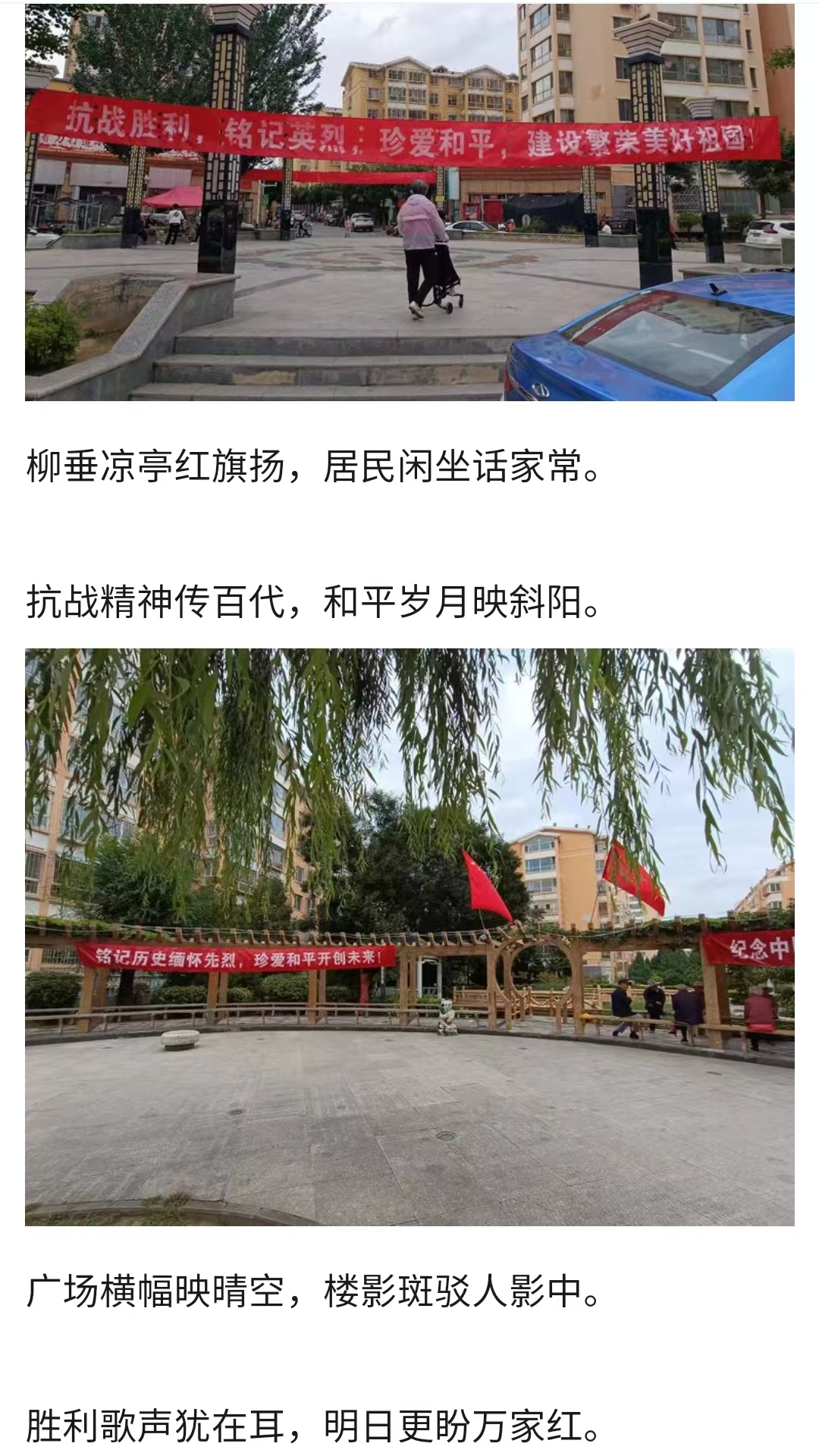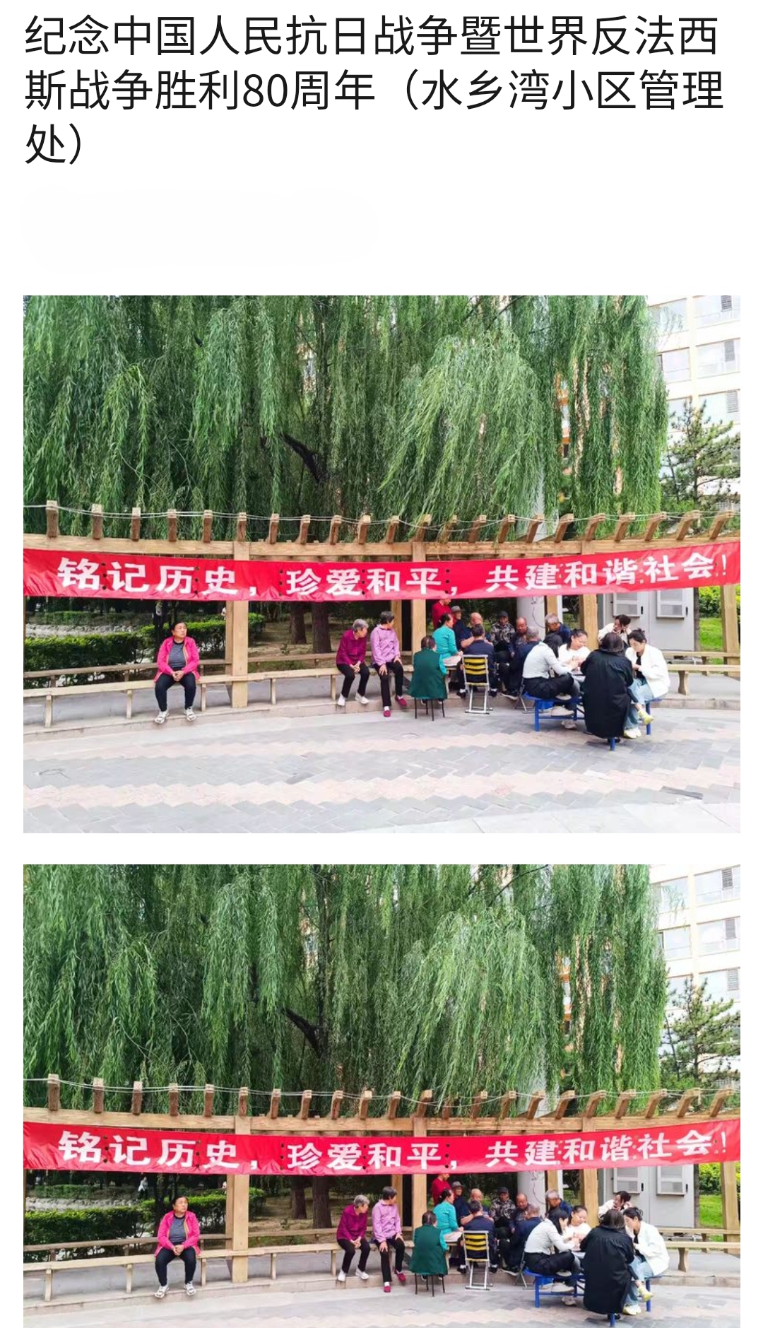 9月2日,泰信物業(yè)各管理處員工把一幅幅紀(jì)念抗戰(zhàn)勝利80周年的條幅懸掛在小區(qū),讓大家更好地銘記歷史,珍惜當(dāng)下的和平歲月。
